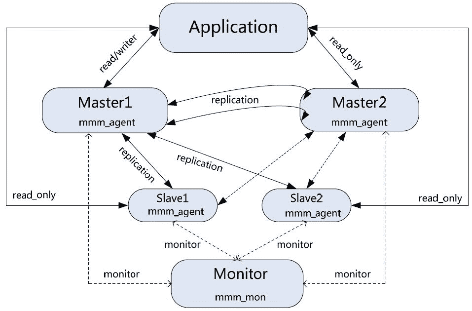 MMM 有多种应用架构,最简单的是两个节点的运行环境,如图 13-12 所示。