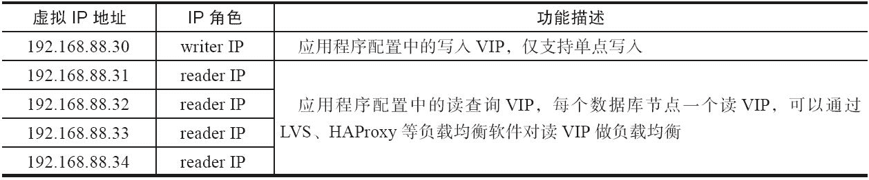 MMM 双主双从应用架构对应的读、写分离 IP 列表如表 13-3 所示。