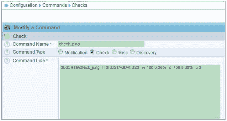 图 8-30 添加一个 check_ping 命令