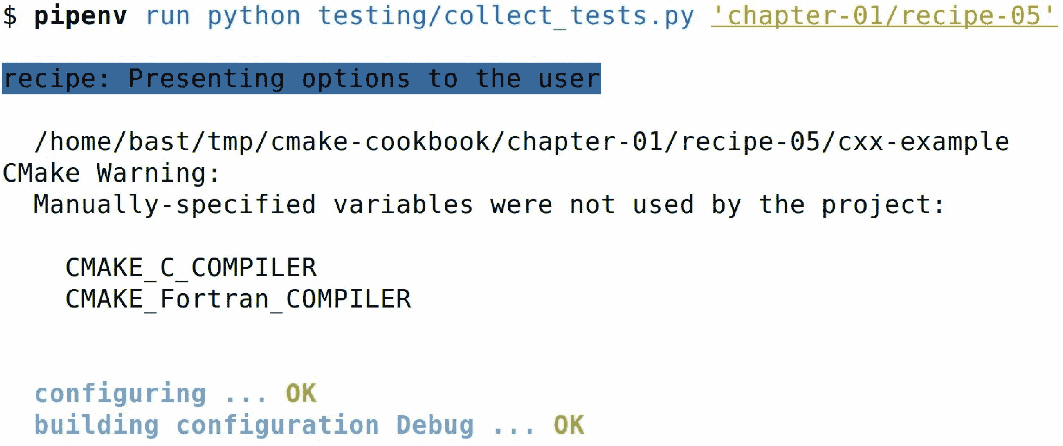 $ env VERBOSE_OUTPUT=ON pipenv run python testing/collect_tests.py 'chapter-*/recipe-*'
