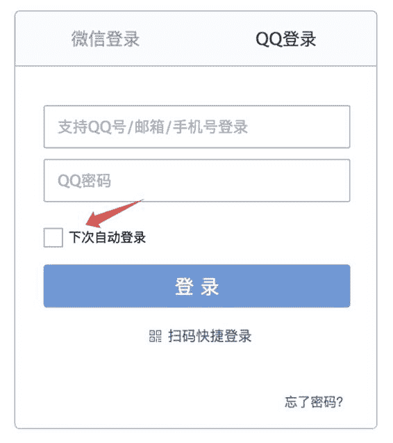 图 6-1 QQ 邮箱登录时的记住我选项
