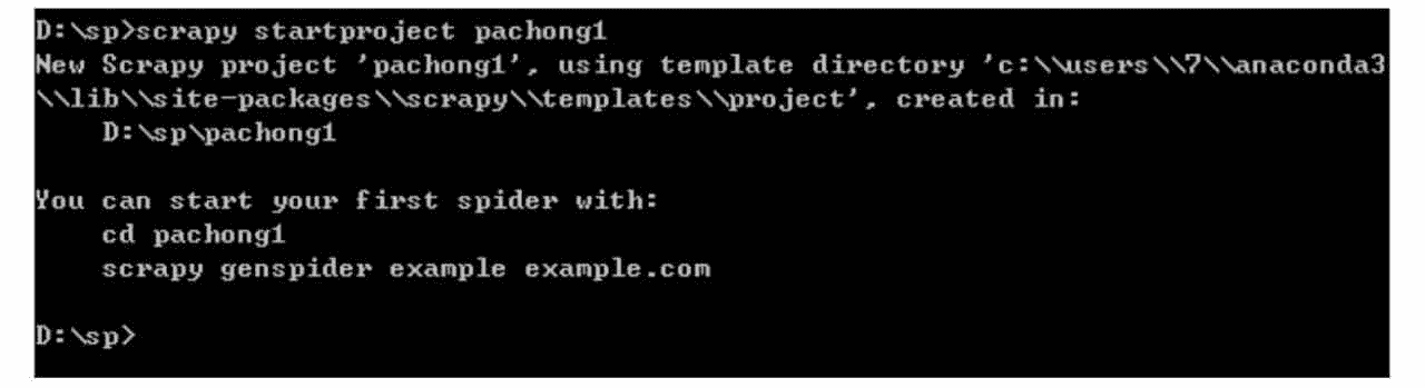 现在可以使用下面的命令创建第一个 Scrapy 项目,如图 9-3 所示。