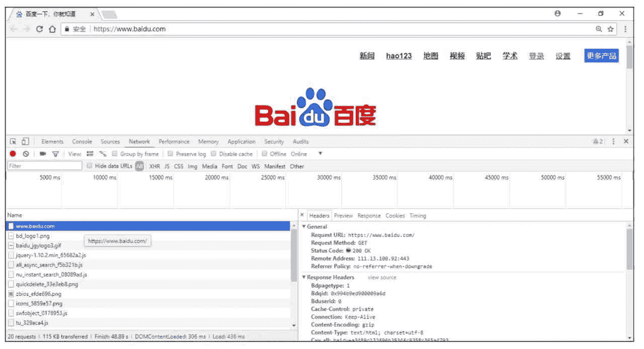Request URL: https://www.baidu.com/ Request Method: GET Status Code: 200 OK