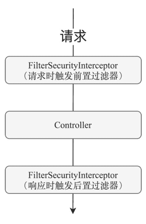 在基于过滤器的权限管理中,请求首先到达过滤器 FilterSecurityInterceptor,在其执行过程中,首先会由前置处理器去判断发起当前请求的用户是否具备相应的权限,如果具备,则请求继续向下走,到达目标方法并执行完毕。在响应时,又会经过 FilterSecurityInterceptor 过滤器,此时由后置处理器再去完成其他收尾工作。在基于过滤器的权限管理中,后置处理器一般是不工作的。这也很好理解,因为基于过滤器的权限管理,实际上就是拦截请求 URL 地址,这种权限管理方式粒度较粗,而且过滤器中拿到的是响应的 HttpServletResponse 对象,对其所返回的数据做二次处理并不方便。