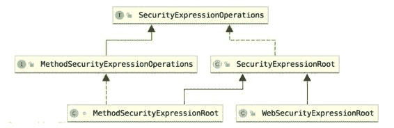 Spring Security 中通过 SecurityExpressionOperations 接口定义了基本的权限表达式,代码如下: