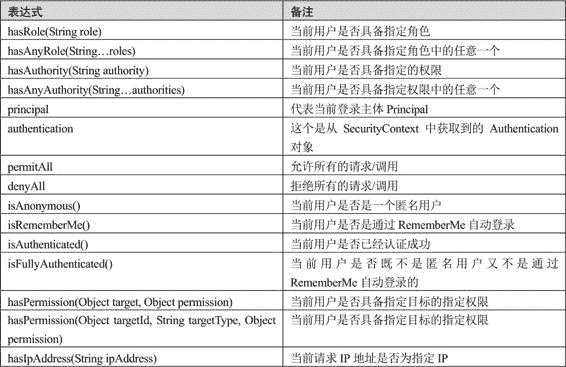 内置的权限表达式如表 13-1 所示。