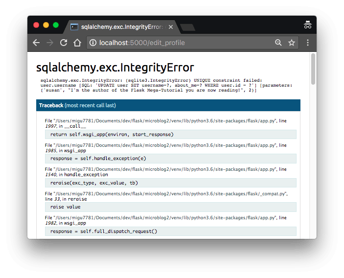 现在让应用再次崩溃,以在浏览器中查看交互式调试器: