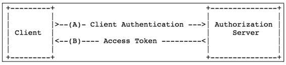 有的应用可能没有前端页面,只有一个后台,这种时候如果要用 OAuth2,就可以考虑客户端模式(Client Credentials),我们来看一个客户端模式的流程,如图 15-5 所示。