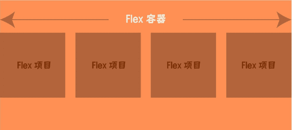 弹性盒模型(The Flexible Box Module),又叫作 Flexbox,它的出现具有非常重要的意义。它挖掘了 CSS 盒模型基本原理,给我们提供了功能更加强大、更有用的模块布局方式。它在 CSS 中的定义和标记非常简单,通过媒体查询的方式就可以适配和响应变化。想象一下吧,在这样的世界中,我们不需要清除浮动,不需要使用额外的框架,也不需要使用大量冗余的代码来实现响应式栅格布局。Flexbox 做了所有这些看起来略显烦琐的工作,所以我们使用起来非常简单——定义 flex 容器,在容器里面再定义所需的 flex 项目,仅此而已,如下图。