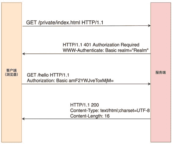 从图 10-1 中我们可以看到,HTTP 基本认证的流程是下面这样的。