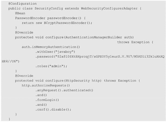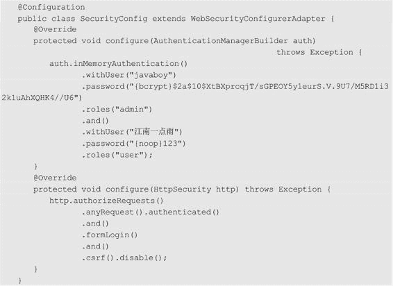 另一方面,由于默认使用的是 DelegatingPasswordEncoder,所以也可以不配置 PasswordEncoder 实例,只在密码前加上前缀: