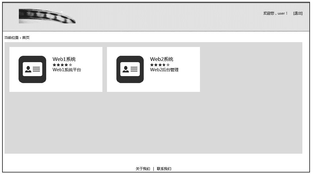 在登录界面上使用上述创建的默认用户登录,登录成功即进入客户应用 1 的系统首页,如图 6-3 所示。需要注意的是,在单机上运行上面 4 个应用需要耗费一定的内存。如果在各个应用的配置文件中,合理配置 IP 地址,也可以将 4 个应用发布在不同的机器上运行,其结果相同。