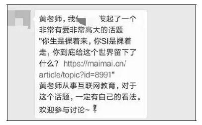 2016 年 10 月 24 日上午,脉脉的一位运营妹子在微信上找到我,给我发了这么一条消息,如图 2-16 所示。