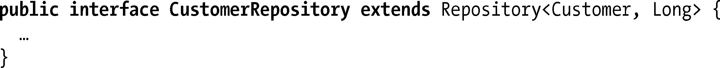 传统的实现数据访问层的方式至少需要实现一个存储类(repository class),这个类会包含基本的 CRUD(Create、Read、Update 与 Delete)方法以及通过限制条件来访问实体子集的查询方法。Spring Data Repository 的方式能够避免大多数的代码,只需为这个实体存储声明简单的接口定义即可,如示例 2-2 所示。