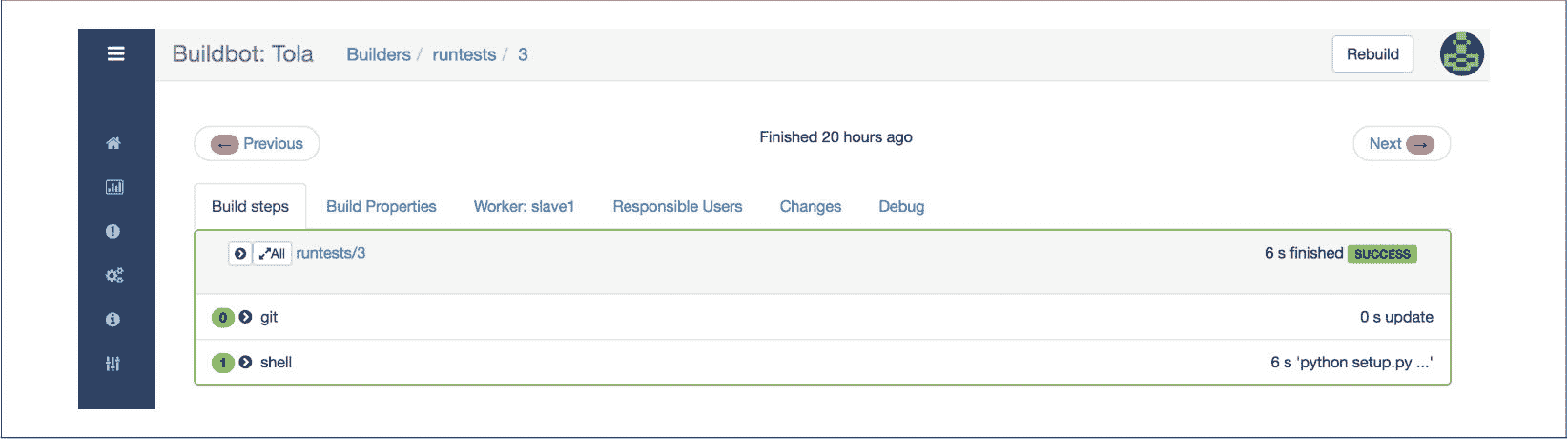 4.Buildbot:用 Python 编写的一个开源 CI 系统。Google Chromium、Python、MongoDB、Mercurial、WebKit、Zope 等项目都使用它来作为持续集成工具。