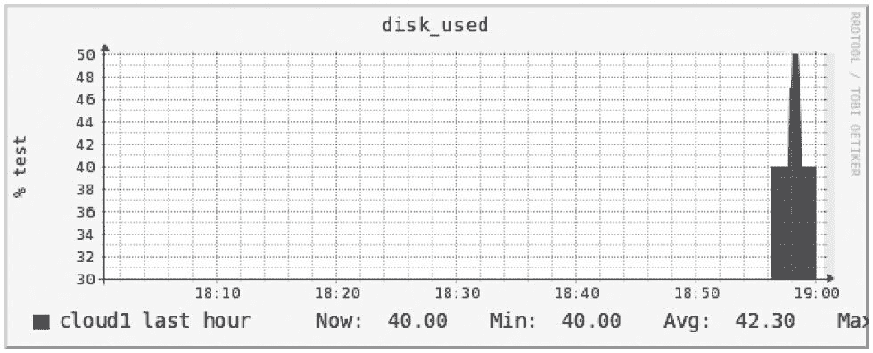 从图 7-5 中可以看到刚才执行命令时设置的几个属性值在报表中都呈现出来了,例如 disk_used、“%test”、cloud1 等。同时,通过 gmetric 写入的监控数值,在报表中也很清楚地展示出来。
