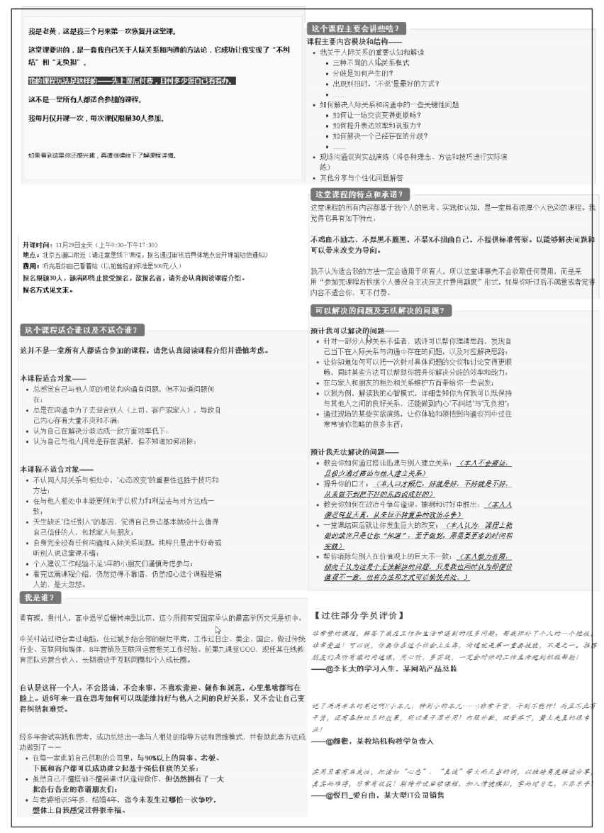 比如,我早年在开设一堂主题特别不靠谱的“人际关系与沟通”课程的时候,课程文案是如图 3-41 所示这样的。