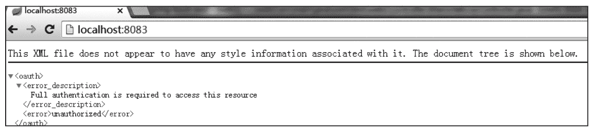 一个应用被标注为资源服务器后,在浏览器中就不能直接访问,如果在浏览器上打开这样的客户端,将只能看到如图 6-1 所示的提示信息。