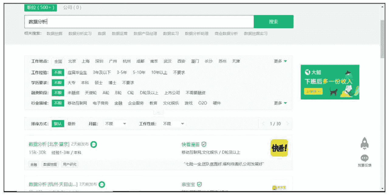 图 8-1 “数据分析”岗位的搜索结果