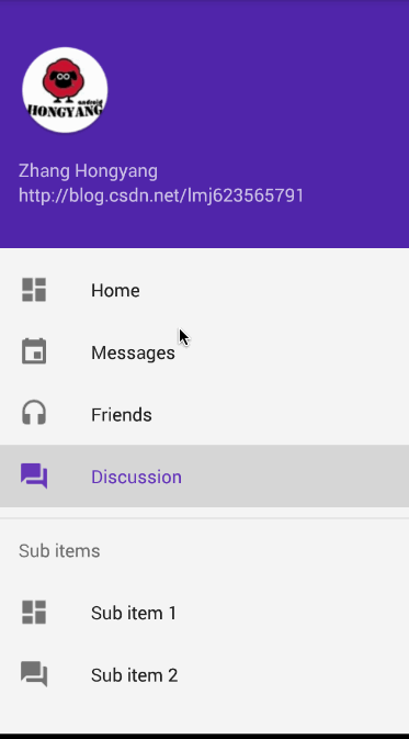 }在这里的对上一次选择的 item 调用了 setChecked(false); 对本次的选中的 item 调用了 setChecked(true); 从而得到状态切换的效果。