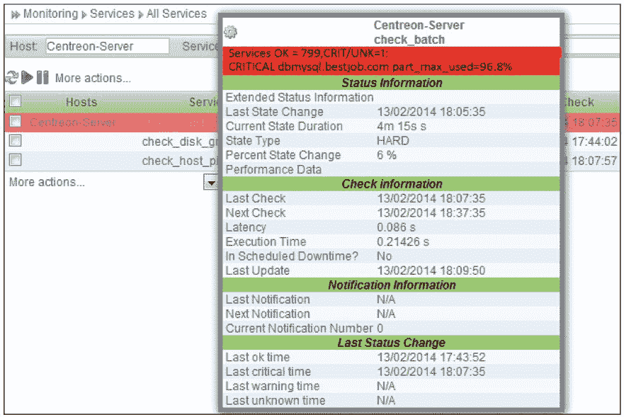 图 9-9 Centreon 在批量监控服务下的运行状态图