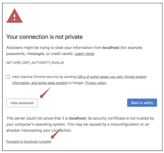 图 9-8 选择继续前往 localhost 即可