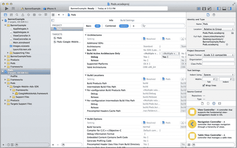 你的项目会引入一个 Pods 项目到 Pods/Google-Mobile-Ads-SDK 目录中。