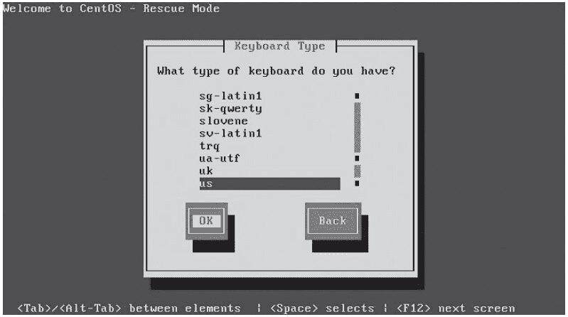 下面进入的是键盘选择界面,如图 4-3 所示,这里选择默认的“us”即可。
