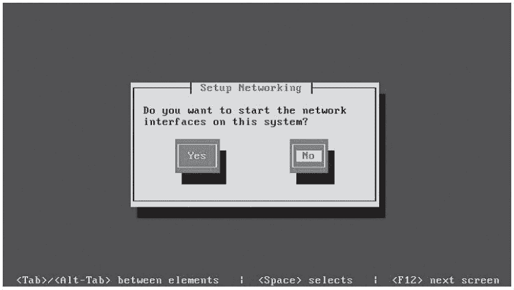 下面进入是否启用网络界面,如图 4-4 所示。由于系统已经无法启动,我们已经在 Linux 系统上进行操作了,启用网络与否都无所谓。这里选择不启用,即“No”。