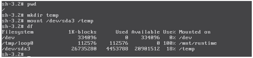 由于 fstab 文件是存放在系统根目录下的,所以首先需要挂载原来系统的根分区,从上面内容可知根分区对应的设备名为/dev/sda3,接着在修复模式下创建一个挂载点,然后挂载原来系统的根分区。操作过程如图 4-10 所示。