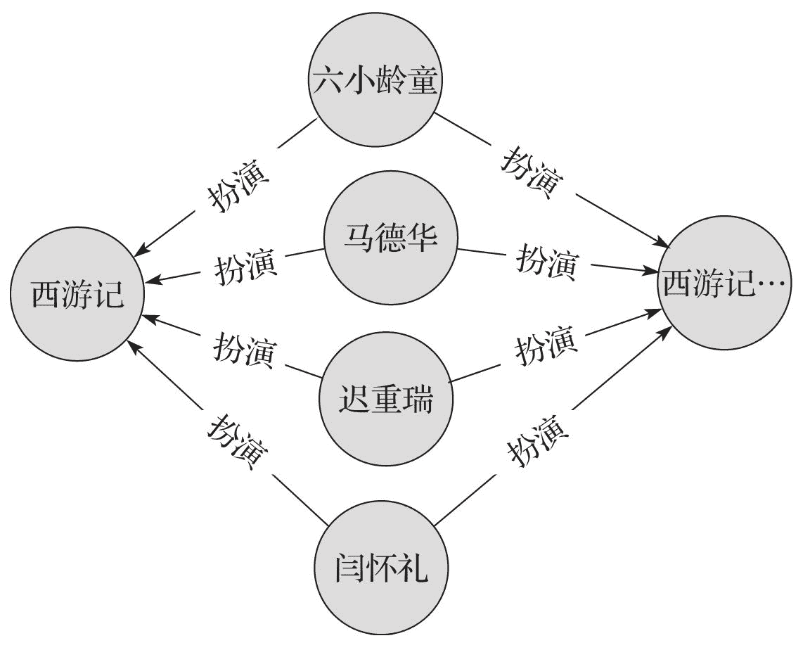 在实例中增加了一些数据之后,在 Neo4j 数据库客户端中单击“扮演”关系,也可以看到电影和演员的关系图,如图 3-7 所示。