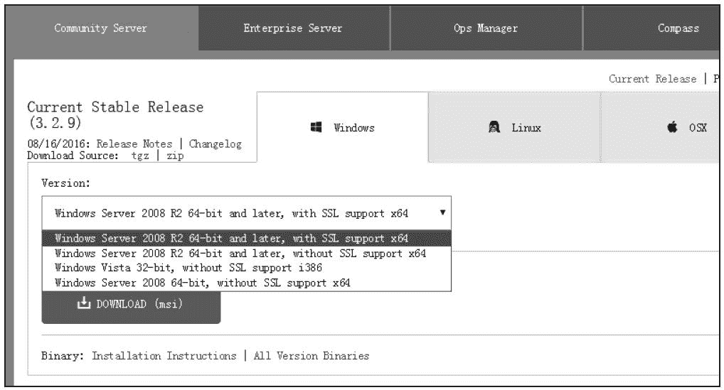 图 B-1 下载 MongoDB 安装包