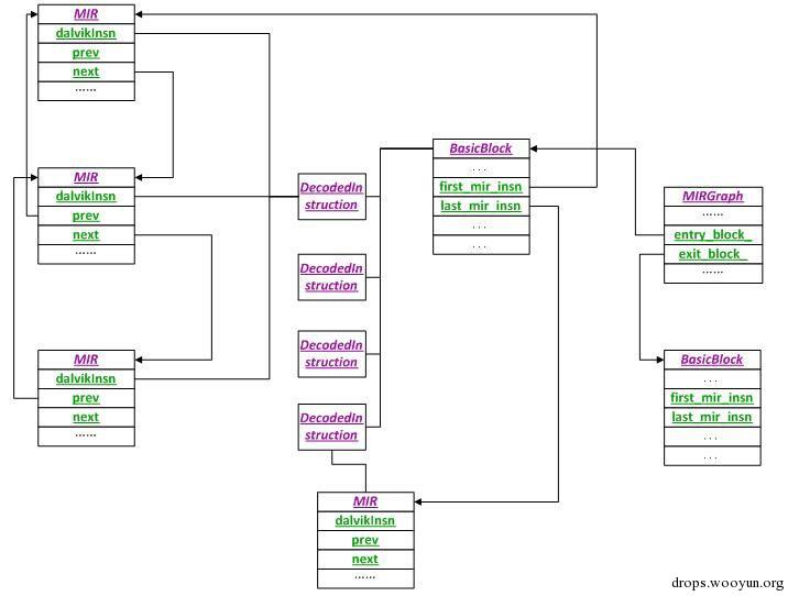 - 整个编译过程基本上是依靠dex2oat来加载CompilerDriver,然后逐个方法来进行编译。将每个方法划分BasicBlock,绘制MIRGraph(控制流图),逐个翻译为以dalvikbtecode的SSA形式为基础的MIR,然后将MIR解析为LIR,最后翻译为Thumb-2指令,最后统一写入一个ELF文件即oat文件。